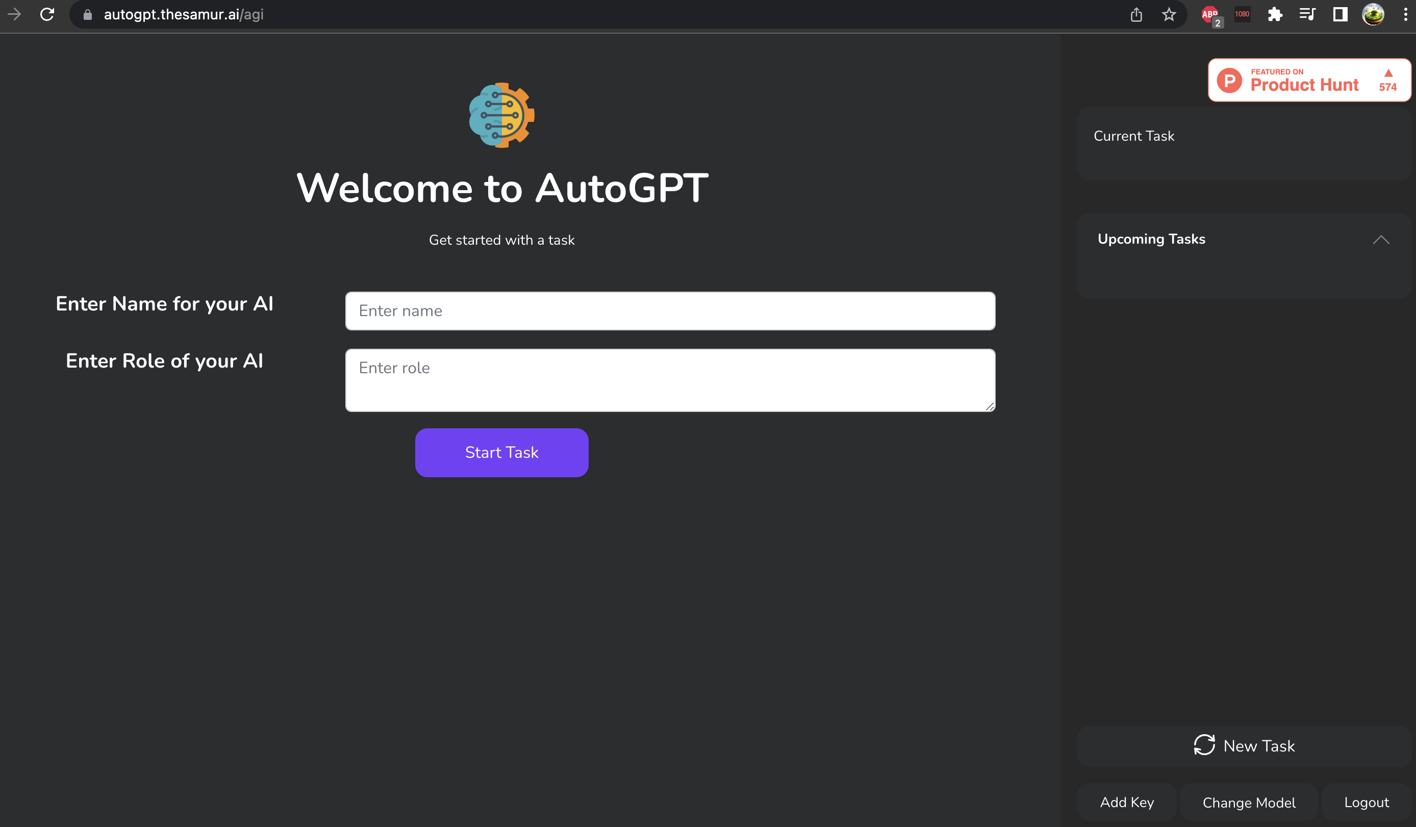 설치 없이 잠깐 사용해 보려면 위의 사이트에서 AgentGPT를 사용해 보면 된다. 데모이므로 기능이 매우 제한되지만, OpenAI API Key 없이 간단하게 사용해 볼 수 있다.