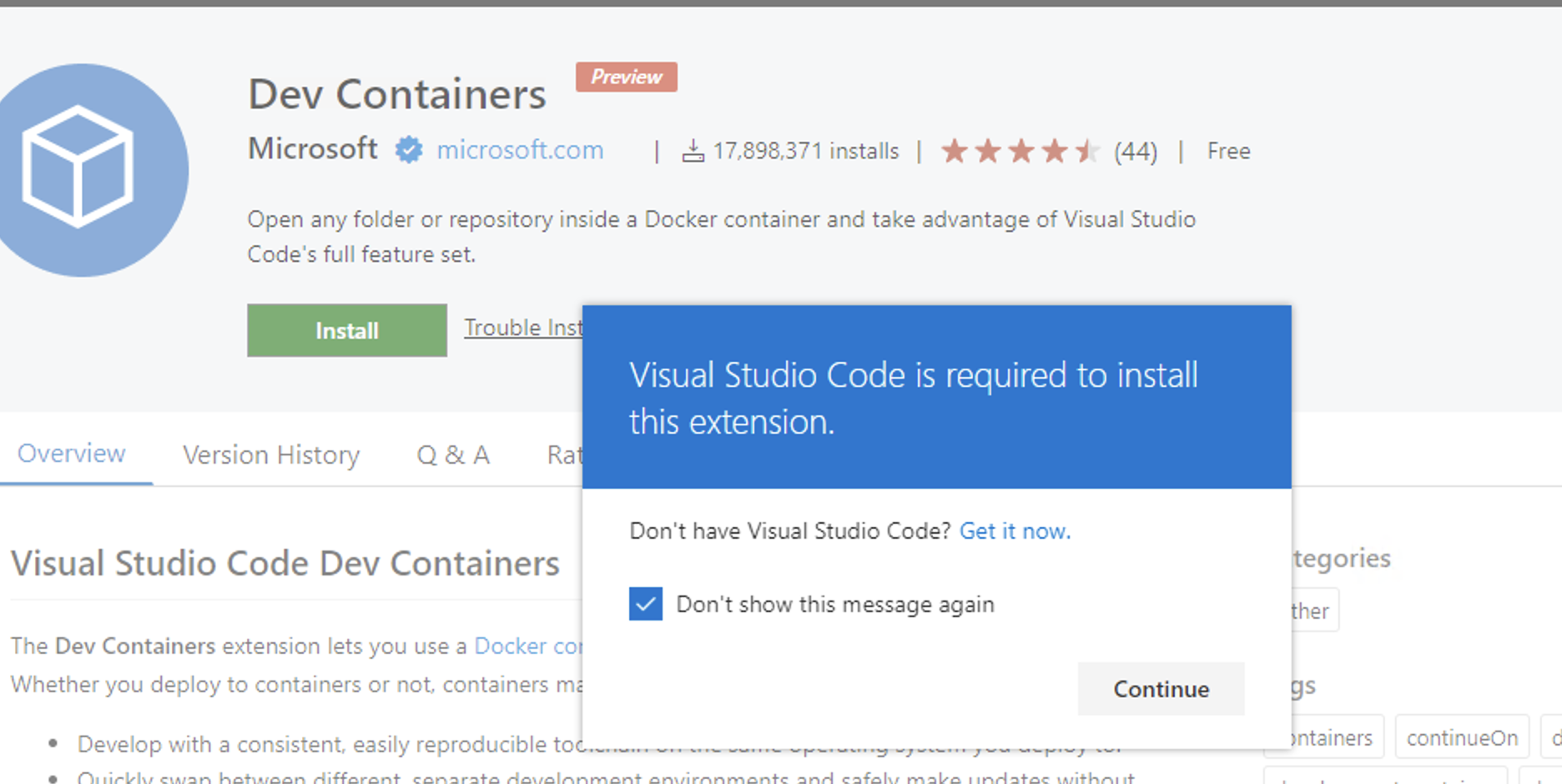 이번에는 Dev Containers다. 이는 Visual Studio Code의 확장 기능이다. 앞의 VS Code 설치 후 설치한다.