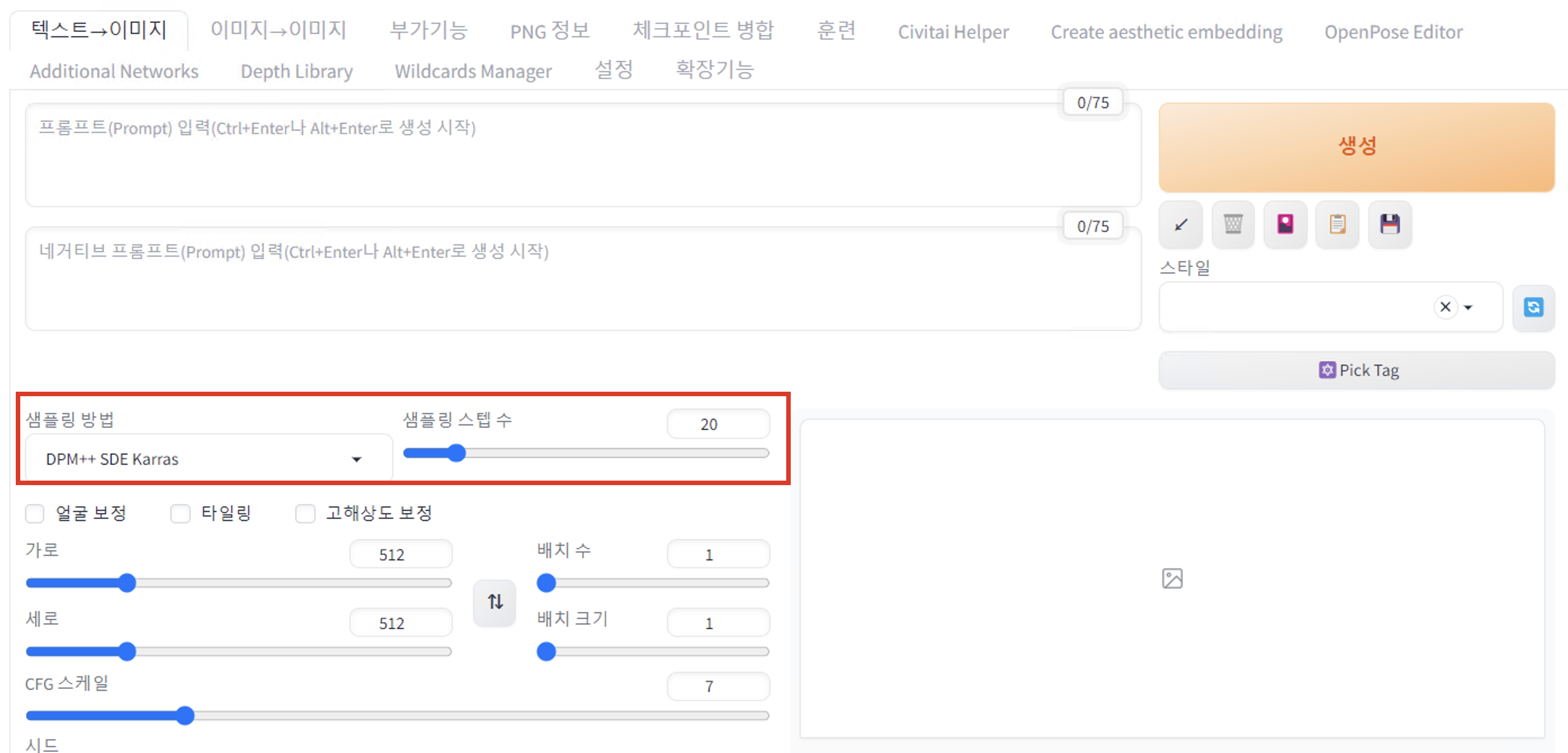 3. (Optional) 로라, VAE, 임베딩, Pose 등의 부가 요소들(예: 특정 스타일을 입히기 위한 LoRA 등)